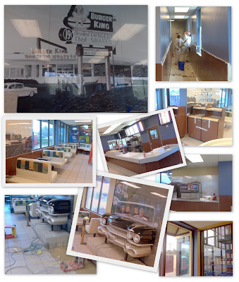 Row 4: Photo 1: another threshold installed; Photo 2: view of the front counter; Photo 3: broiler started up today.